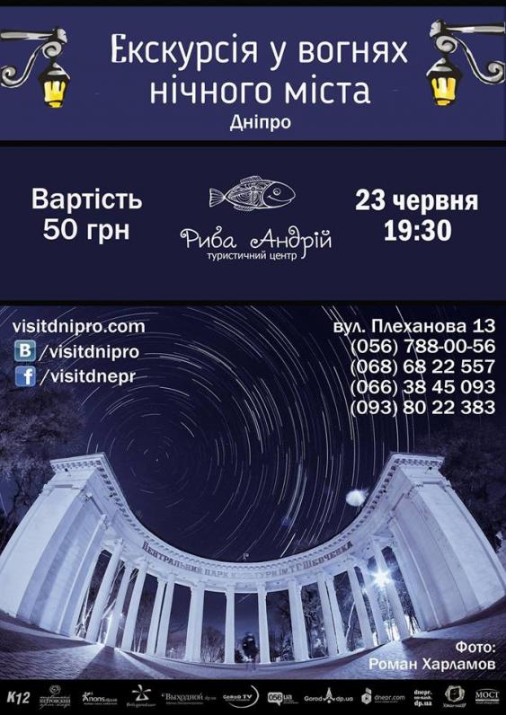 Минуле Дніпропетровська овіяне легендами та таємницями. Якщо ви хочете більше дізнатися про історію та архітектуру рідного міста запрошуємо на екскурсію У вогнях нічного міста! Ви побачите єдиний в Україні памятник кенгуру, унікальний зачарований будинок із жабами, почуєте факти та легенди, повязані з незвичними місцями Дніпропетровська.