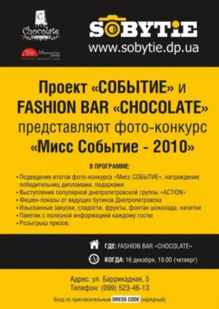 Подведение итогов фото-конкурса Мисс СОБЫТИЕ 2010, награждение победительниц дипломами, подарками.