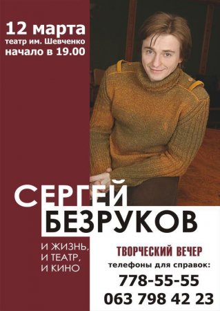 12 марта, Творческий вечер Сергея Безрукова, Театр им. Шевченко