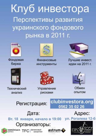 Клуб инвестора – это встреча людей, интересующихся фондовым рынком.На этой встрече, в неформальной обстановке, вы можете обсудить текущее положение дел на фондовом рынке, важные новости и события, обменяться торговыми идеями, поделиться опытом инвестирования, выяснить интересующие вас вопросы.Каждый участник может выступить с докладом на интересную тему о фондовом рынке.