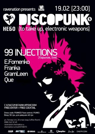 Если вам тоже кажется, что, при всем разнообразии музыкальной жизни Харькова, ей не хватало агрессивной электроники, исполняемой живьем, то вы поймете мотивы создания группы. Музыка 99INJECTIONS танцевальная эклектика. Смесь электронного хардкора, трансовой кислотности и убойного техно-хауса выливается бескомпромиссно брутальным бальзамом на истосковавшиеся по рэйвам души. Здесь нет места сопливой лирике, да и повязки на ртах музыкантов не позволяют никаким поэтическим излияниям проникнуть в надрывающиеся динамики…