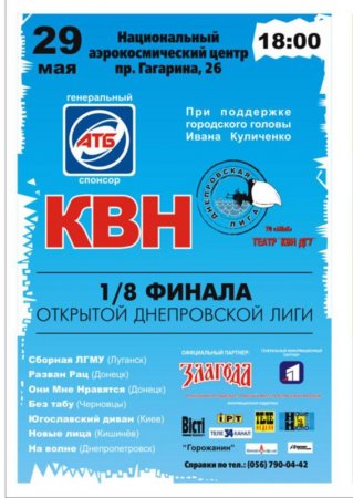 29 мая, 1/8 финала КВН открытой Днепровской лиги
