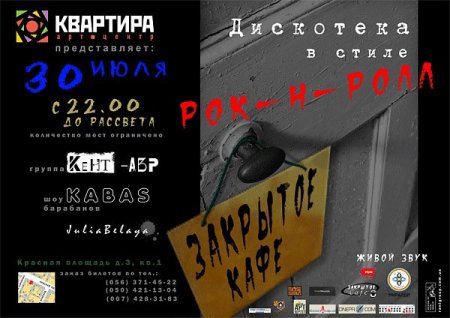 30 июля,Закрытое кафе, Арт – Квартира