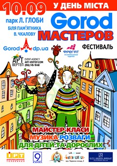 Близько 10 000 дніпропетровців були учасниками, глядачами та покупцями Першого фестивалю Gorod Майстрів , що відбувся 24 серпня в Дніпропетровську. 60 майстрів з Дніпропетровська та України, представили унікальні авторські роботи та провели 30 майстер-класів з традиційних та модерних ремесел.