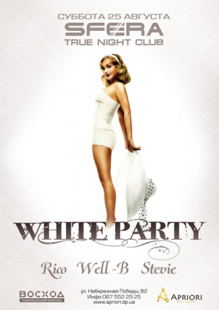 Події (Заходи) 25 августа, White Party By Татьяна Иванова - 24.08.2012 00:00 0 14 Поділитися FacebookViberTelegramTwitterWhatsAppPinterestPrintEmail White Party White Party Dj’s: Stevie Rico Lopez Well-B Сфера (SFERA true night club) Адрес: ул. Набережная Победы, 82 , тел.: 36-00-11, info online (067) 553-25-25Начало: 22:00Вход: уточняйте дополнительно