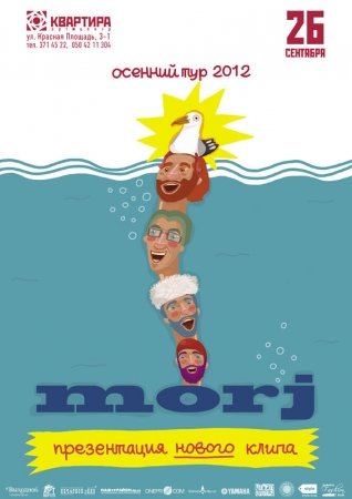 26 сентября в 20.00 группа ‘Morj’ приглашает на презентацию долгожданного клипа-фильма. Концерт обещает стать не просто калейдоскопом звуков, чудес и превращений, странных новых и любимых старых песен – Вас ожидает замирание сердец в темноте кинозала, скрип вращающейся ручки проектора, смех и слёзы… и заветно-торжественное: ‘Гендель, заряжай!..’