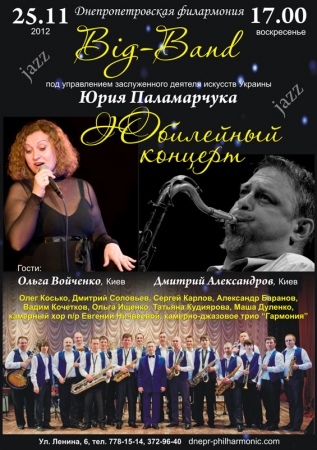 25 ноября, Юбилейный концертДжаз-оркестр под управлением заслуженного деятеля искусств Украины Юрия Паламарчука