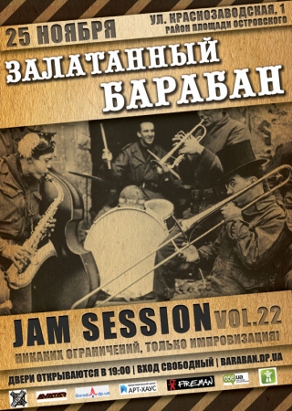 25 ноября, Jam Session Vol.22Джем-сейшен – это совместная музыкальная сессия, музыкальное действо, когда музыканты собираются и играют без особых приготовлений и определённого соглашения, либо когда взять инструмент и выступить может каждый из присутствующих.