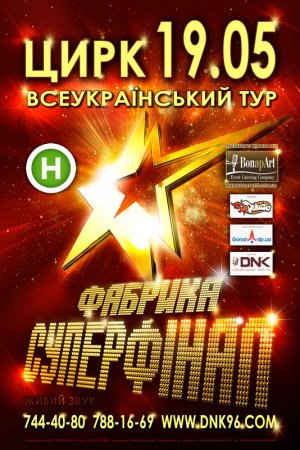 Музика 19 мая, Фабрика Звезд, Цирк By Татьяна Иванова - 16.05.2010 00:00 0 12 Поділитися FacebookViberTelegramTwitterWhatsAppPinterestPrintEmail 19 мая, Фабрика Звезд, ЦиркФабрика. Суперфинал. Живой звук 19 мая 2010 года, среда, 19:00 Цирк ул. Набережная Ленина, 33, тел.: 744-86-59, 744-40-80, 744-86-79 Цена билета: 100 – 350 грн.