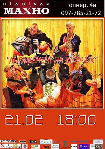 Яскраві, гучні, енергічні, неповторні Ангажемент на Вівторок їдуть в Дніпропетровськ, щоб задати копоті!
