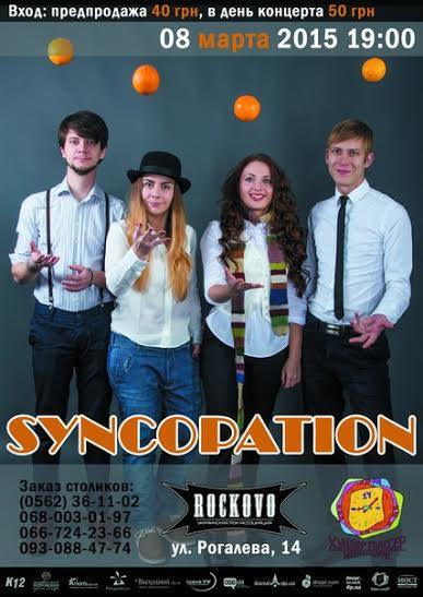 Мелодии рока и блюзовый настрой объединились воедино, глубокий низкий вокал и море драйва. Именно так характеризуют группу Syncopation –https://vk.com/the_syncopation.