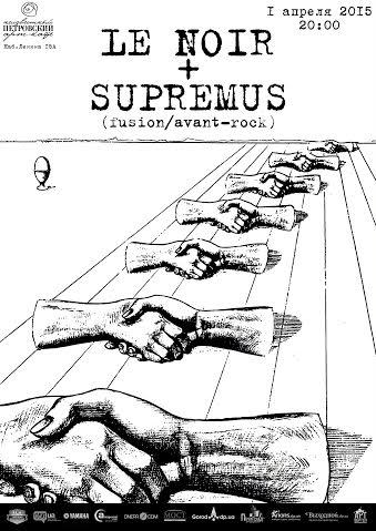 1 апреля пройдет очередной совместный концерт днепропетровского джазового коллектива ‘Le Noir’ и киевского проекта экспериментальной музыки ‘Supremus’. В этом тандеме коллективы выступали в ‘Неизвестном Петровском’ летом 2013 года, а также появлялись на телевидении. С участием днепропетровских музыкантов проект ‘Supremus’ в 2013 году выпустил дебютный альбом ‘Artifacts’ по мотивам романа братьев Стругацких ‘Пикник на обочине’.