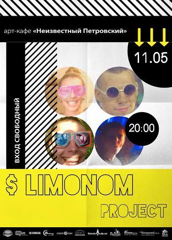 $ limonom project – команда музыкантов, у каждого из которого был свой музыкальный опыт, при этом абсолютно разносторонний. Собрались мы с общей целью благодаря тому, что видим современное творчество под одним углом. Начать решили с каверов на всеми любимые песни, понемножку добавляя в программу авторские песни. Хочется повлиять на музыкальные вкусы окружающих нас всех людей , при чём в правильную сторону.