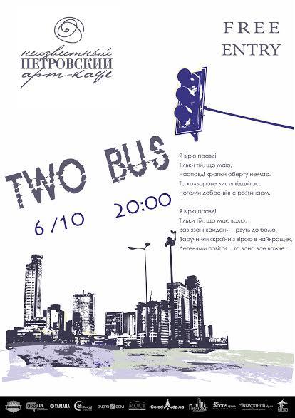 6 октября в арт-кафе ‘Неизвестный Петровский’ пройдет концерт группы ‘TWO BUS’ или ‘Два автобуса’