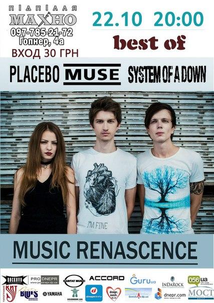 Вы имеете уникальную возможность живьем насладится хитами Muse, Placebo и System of a Down в исполнении киевской группы Music Renascence