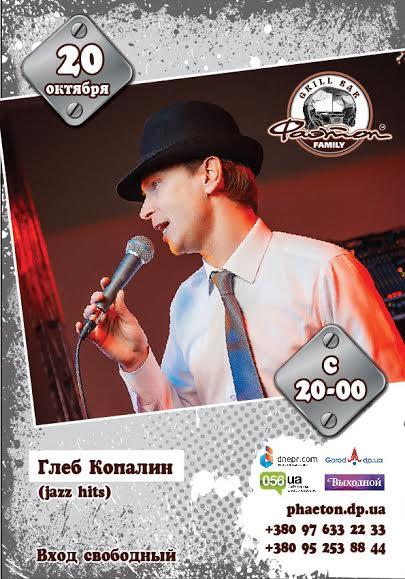 Яркий и насыщенный вечер трудового вторника, 20 октября, ждет наших Гостей! Гриль-бар Фаэтон с открытыми вратами приглашает Вас на вечер артистичного и выразительного классического джаза в исполнении Глеба Копалина на сцене гриль-бара Фаэтон. Будет очень интересно!