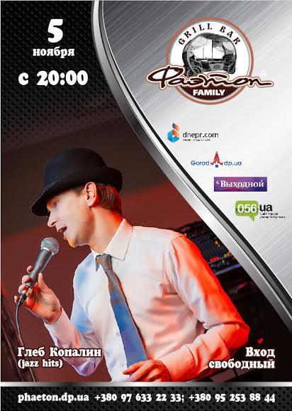 5 ноября, в четверг, подсластить Ваш прекрасный вечер со сцены Фаэтона сможет вокал настоящего джазмена артистичного Глеба Копалина! Удовольствие от услышанного подарит Вам запоминающееся впечатление, а знакомые мотивы удивят фирменными подачами музыкальных композиций.