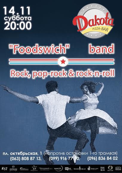 Субботний Rock-n-roll прозвучит для вас от группы ‘Foodswich’! В их программе вы услышите много стареньких, но не забытых хитов, а так же немного рок-баллад в формате рок-акустика.