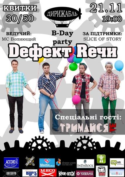 И вновь мы с Вами собираемся ради знаменательного события! Мы будем праздновать пятилетие самого позитивного коллектива Днепропетровска, группы Dефект Rечи! И ребята вновь готовы поведать Вам невероятно истории, которые произошли с ними в течение года в своем неповторимом стиле!