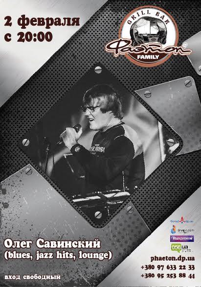 В первый февральский вечер вторника, 2 февраля, Вы услышите знакомые мотивы в исполнении Гостя сцены Фаэтона! Яркий и харизматичный вокал элегантного Олега Савинского (вокалист и музыкант группы 3ton-acoustic) угостит Вас романтическими музыкальными композициями.