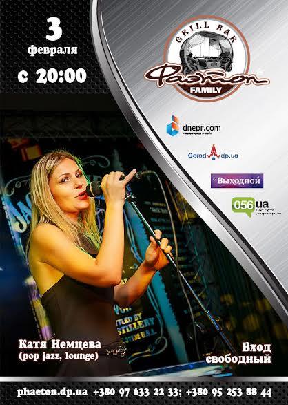 3 февраля, приглашаем Вас с семьей, родными и близкими хорошо провести время в уютной, дружной и почти домашней атмосфере. Чистый, качественный и приятный живой звук скрасит Ваш вечер и сделает его незабываемым! Весь вечер на сцене для Вас поет наш вокалист – Екатерина Немцева.