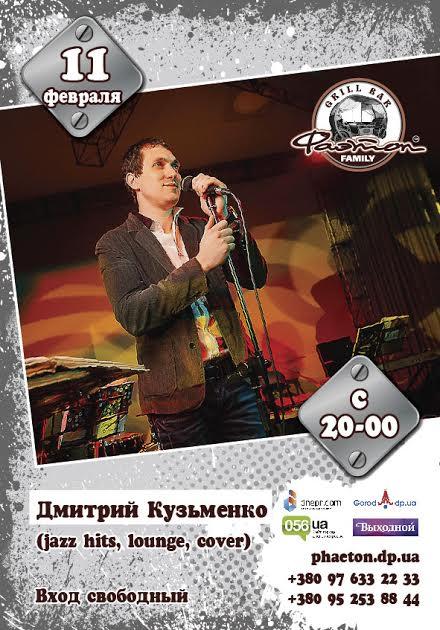 В четверг, 11 февраля, приглашаем Вас провести вечер с яркими эмоциями, на сцене гриль-бара обворожительный и харизматичный Гость из г.Харькова и друг Фаэтона Дмитрий Кузьменко.