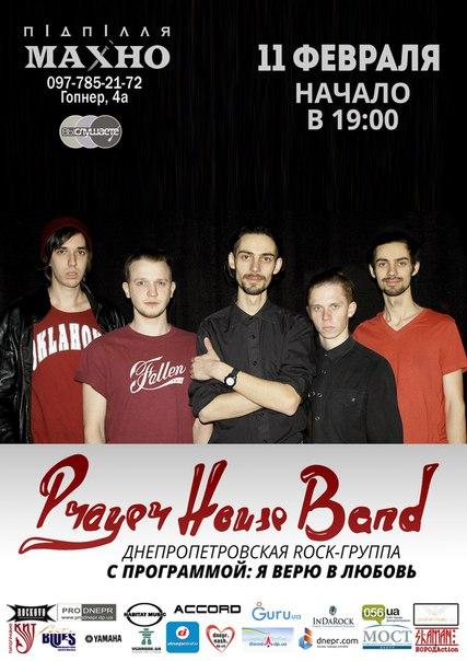 Prayer House Band https://vk.com/ph_band – это украинская рок группа из города Днепропетровска. Группа создана в 2010 году и выступала на творческих фестивалях Art Party, Днепропетровских благотворительных концертах и участвовала во многих других проектах.