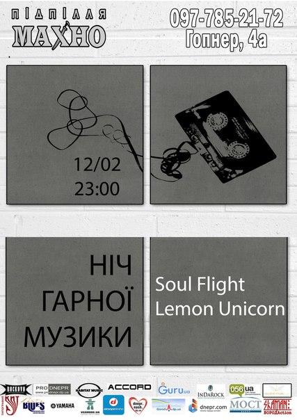 Музика Ніч гарної музики в Махно By Татьяна Иванова - 10.02.2016 00:00 0 11 Поділитися FacebookViberTelegramTwitterWhatsAppPinterestPrintEmail 12 лютого в 23:00 вхід 30 грн Ніч гарноі музики Махно паб Учасник №1: Lemon Unicorn Учасник №2: Soul Flight Dnepr.com