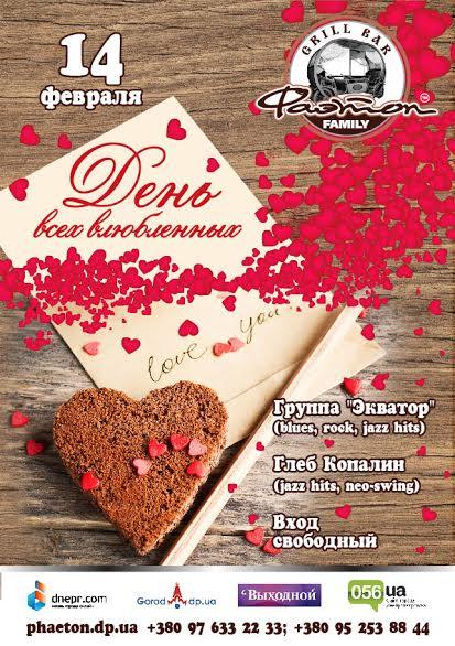 Вечером в воскресенье, в День Всех Влюблённых, в День Святого Валентина – 14 февраля, атмосферу праздника начнет создавать яркий и харизматичный вокал нашего Гостя Глеба Копалина, который будет передавать любовь прямо через песни, а вместе с ним, музыкальную феерию создаст, а скорее поддержит и продолжит неутомимые музыканты и таланты – группа Экватор.