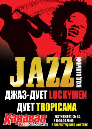 Музика Jazz, ТРК Караван By Татьяна Иванова - 06.08.2010 00:00 0 22 Поділитися FacebookViberTelegramTwitterWhatsAppPinterestPrintEmail Jazz, ТРК КараванЕженедельно – Luckymen, дует Tropicana Каждую пятницу, субботу и воскресенье, 17:00-20:00 Караван, ТРК (Левобережный) ул. Нижнеднепровская, 17 тел.: 747-99-85 Вход свободный
