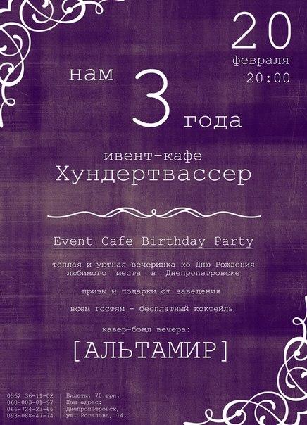 В связи с этой радостной датой ивент-кафе ‘Хундертвассер’ приглашает на тёплую и атмосферную Birthday Party, с подарками и призами от заведения, литрами бесплатных коктейлей для всех гостей и, конечно же, морем отличной живой музыки!!!
