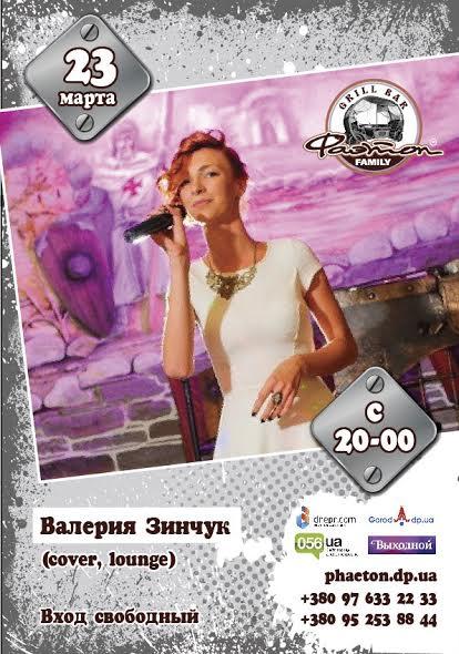 В среду, 23 марта, приглашаем Вас провести вечер с яркими эмоциями, отличным настроением и вкусными блюдами. На сцене гриль-бара представитель прекрасной и романтичной стороны, обворожительная Гостья с прекрасным и харизматичным вокалом Валерия Зинчук. Приходите, ждем в Гости!