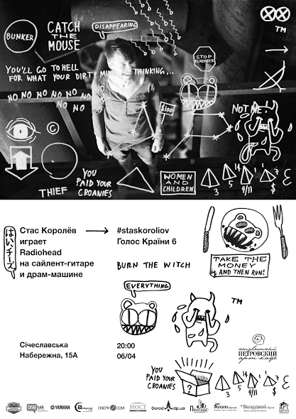 Стас Королев – это известный среди ценителей радиоголовых парней из Оксфордшира, ретранслятор их музыки. 3 апреля в рамках шоу ‘Голос Країни 6’ Стас исполнит Reckoner с помощью синтезатора, гитары, драм-машины и лупера, и после этого приедет в Днепропетровск сыграть по горячим следам концерт, состоящий из песен Radiohead.