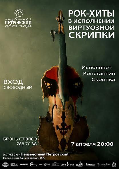7 апреля в арт-кафе Неизвестный Петровский пройдет вечер рок-музыки в исполнении виртуозной скрипки.