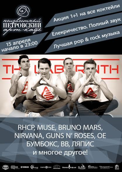 Приглашаем вас провести незабываемою ночь с группой THE LABYRINTH в Арт-кафе ‘Неизвестный Петровский’ 15 апреля!