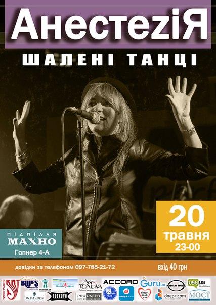 Неповторний гурт АнестеzіЯ подарує нам шалену ніч та ШАЛЕНІ ТАНЦІ!