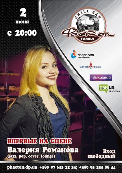 2 июня, приглашаем Вас послушать хорошую музыку! Впервые на сцене Фаэтона – Валерия Романова!