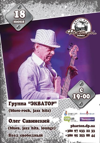 18 июня, в субботу, гриль-бар приглашает в Гости и гарантирует непередаваемые впечатления и эмоции. Фаэтон с радостью представляет Вам Гостей виртуозов поп/рок- музыки, харизматичных и неутолимых группу Экватор! А так же разогреет и поддержит атмосферу комфорта приятные вокальные сюрпризы от нашего Гостя Олег Савинский! Атмосфера уюта и комфорта уже ждет Вас в самом необычном гриль-баре в городе! Ух, суббота, мы ждем тебя!