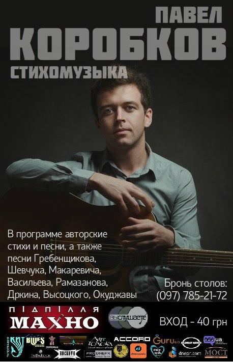 Приглашаем вас на большой акустический вечер Паши Коробкова (ех ЖИВОИN). Будучи на 100% славяноязычной, программа ‘СТИХОМУЗЫКА’ объединила в себе все самое понятное – близкое и далекое, ведь стихи не требуют перевода, а музыка и подавно.