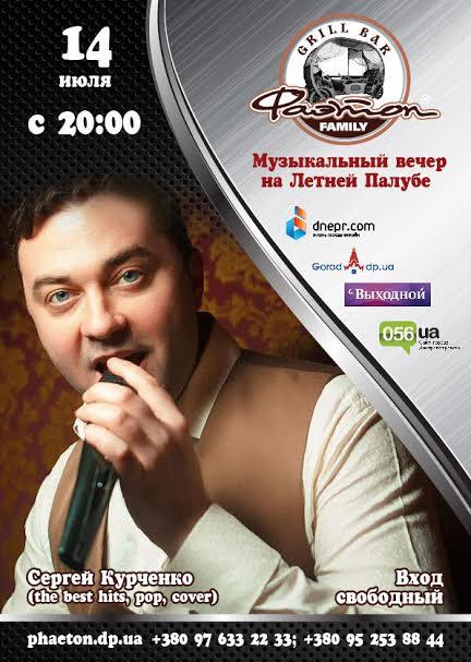 В четверг, 14 июля, приглашаем Вас провести вечер с яркими эмоциями, на сцене гриль-бара обворожительный Гость Сергей Курченко. Ждем Вас большой компанией с друзьями, родными и близки! Вкусные блюда на гриле прямо в центре зала, фирменное разливное пиво Фаэтон, заводное настроение и теплая и уютная атмосфера все это ждет Вас в этот вечер в гриль-баре. Ждем в Гости!