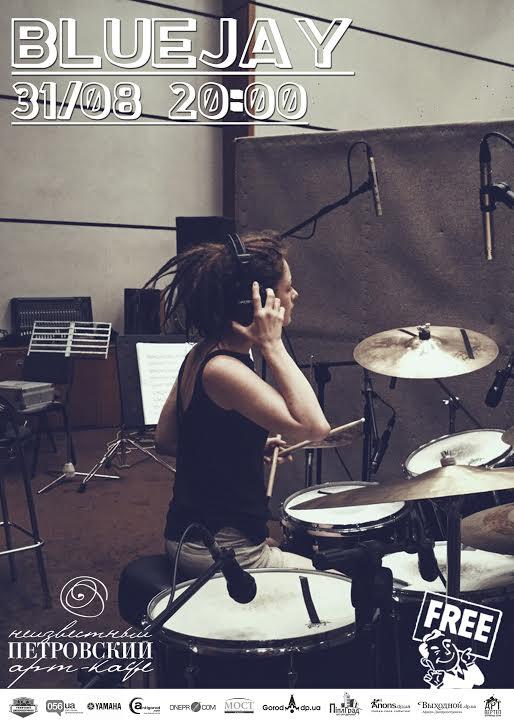 Bluejay – проект молодых, но увлечённых музыкантов Днепропетровска, в которых уже долгое время кипело неистовое желание поделиться со всеми полюбившей им музыкой, в виде каверов, а также совершенно новой интерпретации песен таких исполнителей как Gretchen Parlato, Erykah Badu, Kwabs, Floetry, Robert Glasper и другие. Хип-хоп и другие современные течения музыки окутают 31 августа стены ‘Неизвестного Петровского’.