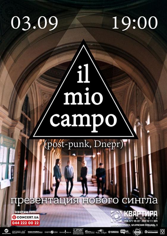 Днепропетровская пост-панк группа il mio campo меньше, чем за год своего существования успела выпустить ряд песен, съездить в тур по стране и теперь, спустя перерыв на 3 месяца снова возвращаются на сцену. il mio campo будут презентовать свой новый сингл, после чего отправляются в украинский тур с группой Буерак.