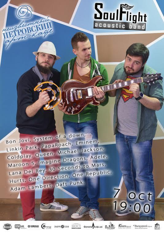 Ведь именно в пятничный вечер, в нашем уютном заведении музыканты из ‘Soul Flight’ порадуют не просто душевной музыкой, но и драйвом, танцами и рок-н-роллом!… в собственных интерпретациях мировых хитов рок и поп-музыки всех времен.