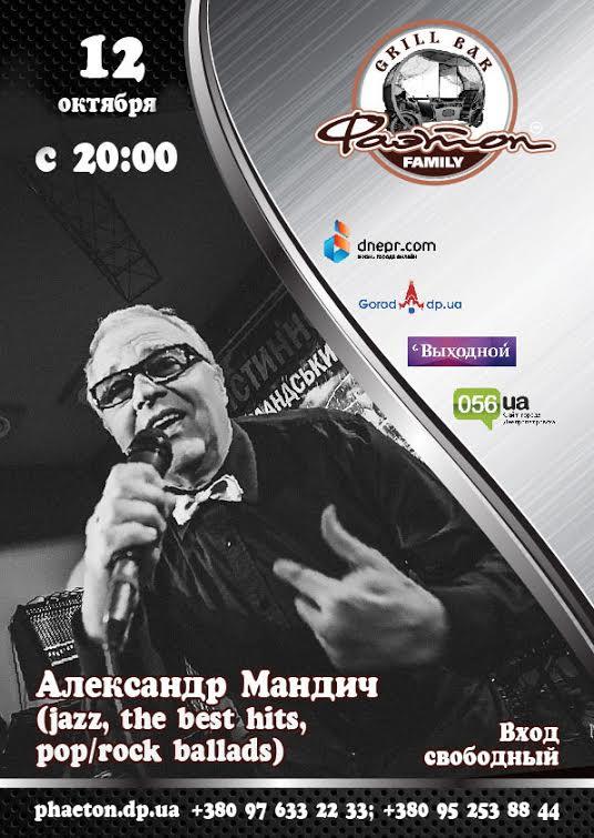В среду, 12 октября, приглашаем ощутить согревающее осеннее настроение гостеприимного Фаэтона. В этот вечер нам подарит гуру музыки проверенной временем Александр Мандич!