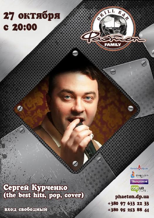 Вечером, 27 октября, Вас ждет у себя гостеприимный ‘Фаэтон’, весь вечер для Вас будут петь и играть зачаровывающий и наслаждающий вокал Сергея Курченко. Для Вас будут исполнены лучшие, популярные и не угасающие композиции в фирменных подачах и обработках. Приходите, не пожалеете!