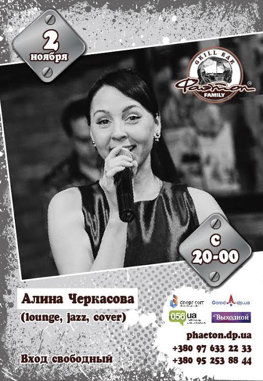 В среду, 2 ноября, приглашаем Вас провести вечер с яркими эмоциями, отличным настроением и вкусными блюдами. На сцене гриль-бара – Алина Черкасова.