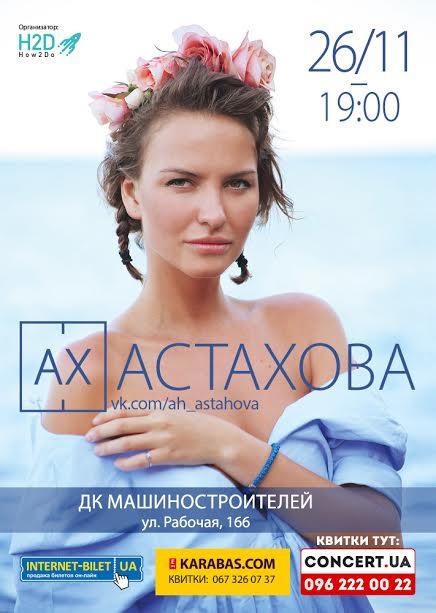 26 ноября в ДК Машиностроителей будет разливаться искусство слова. Невероятная, чувственная и такая многогранная Ах Астахова выступит в Днепре с новой программой Карманная планета, премьера которой состоится в октябре в Москве. Её стихи останавливают время, зажигают душу и возбуждают разум.