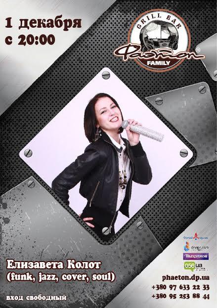 В четверг, 1 декабря, Фаэтон поздравляет всех с приходом зимней поры и приглашает Вас провести вечер с яркими эмоциями, отличным настроением и вкусными блюдами. На сцене гриль-бара представитель прекрасной и романтичной стороны, обворожительная Гостья с прекрасным и харизматичным вокалом Елизавета Колот. Приходите, ждем в Гости!