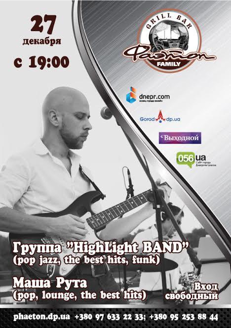 Фаэтон с радостью представляет Вам Гостей группа ‘HighLight BAND’! А так же разогреет и поддержит атмосферу комфорта приятные вокальные сюрпризы от нашей Гостьи Маши Руты! Атмосфера уюта и комфорта уже ждет Вас в самом необычном гриль-баре в городе!