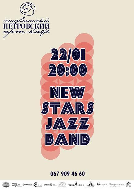New Stars Jazz Band – сильнейший состав из прогрессивных джазовых музыкантов Днепропетровска. В программе авторская музыка, а так же джазовые стандарты в собственных аранжировках.
